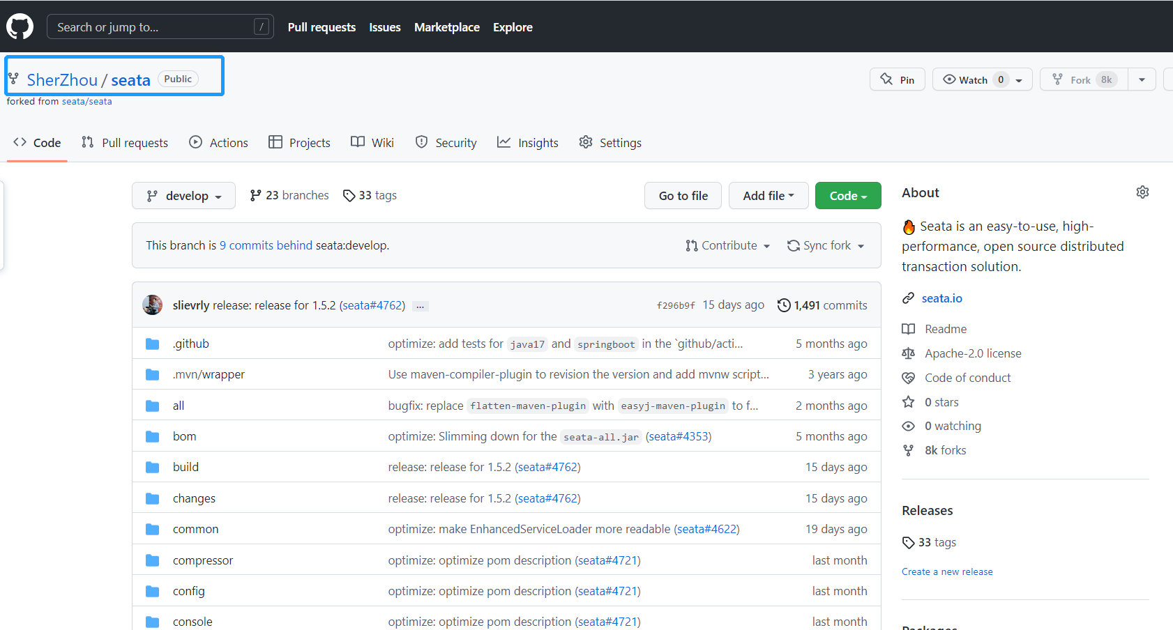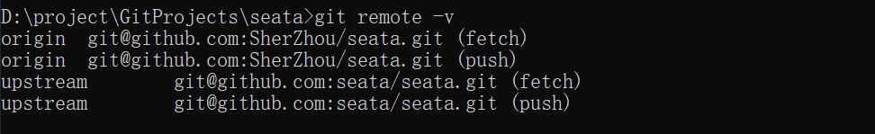 可以看到自己的仓库地址(origin )与源仓库地址(upstream)